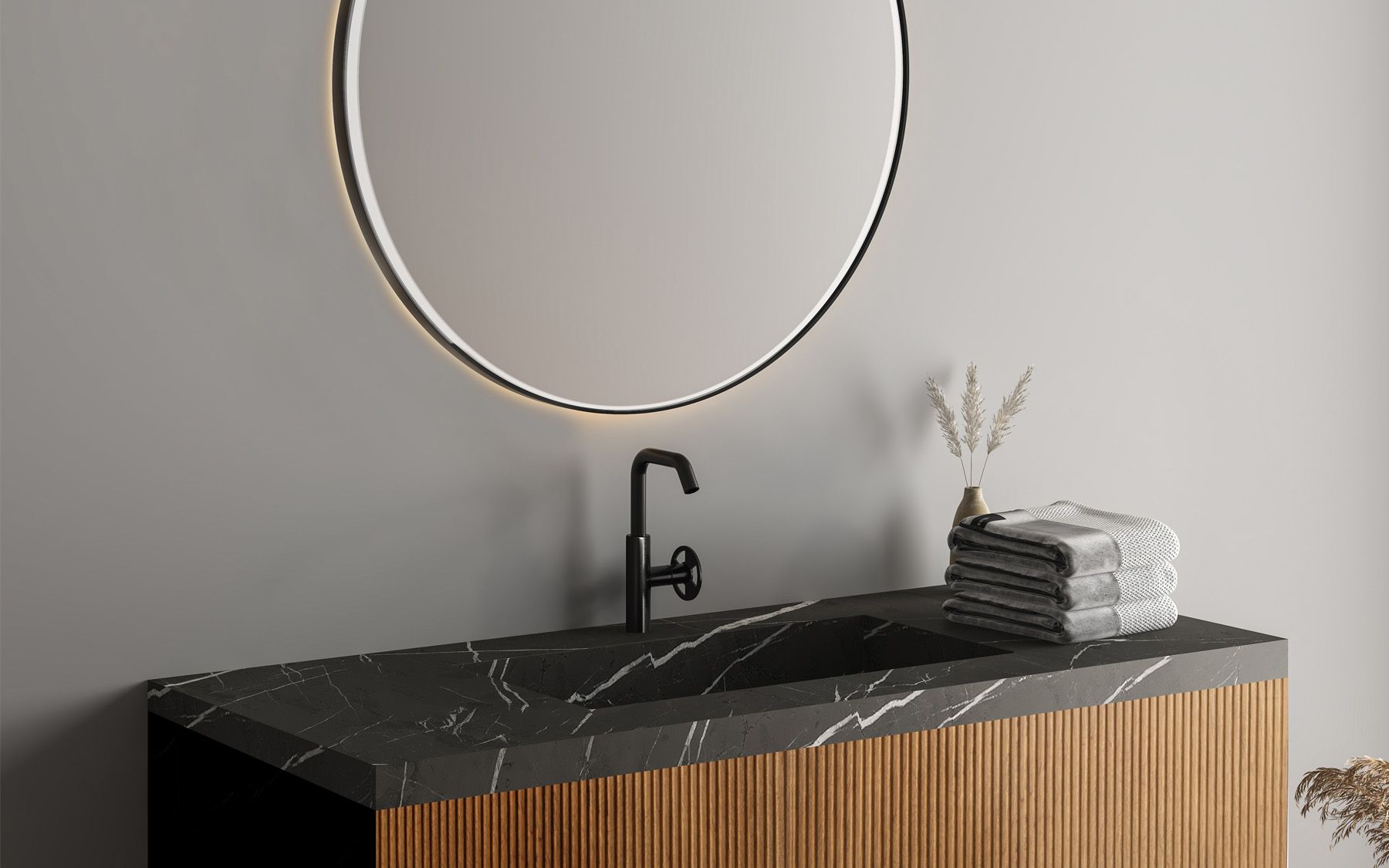 - Pflegeleicht & robust: strapazierfähige Oberflächen, hochwertige Waschtischmaterialien (Keramik, Mineralguss, Komposit).